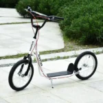 Glide outdoors in style with this light blue kick scooter from HOMCOM. It’s made with dual front and rear braking system, which allows you to stop immediately whilst riding along, with the low platform and two big treaded rubber wheels making the journey smooth and enjoyable. Using steel for the structure to handle up to 100kg, the handlebar can be adjusted between 90cm and 96cm so you can set to a comfortable holding height. It’s finished with soft foam on handle bars and a lift-out stand to keep in place when not in use.