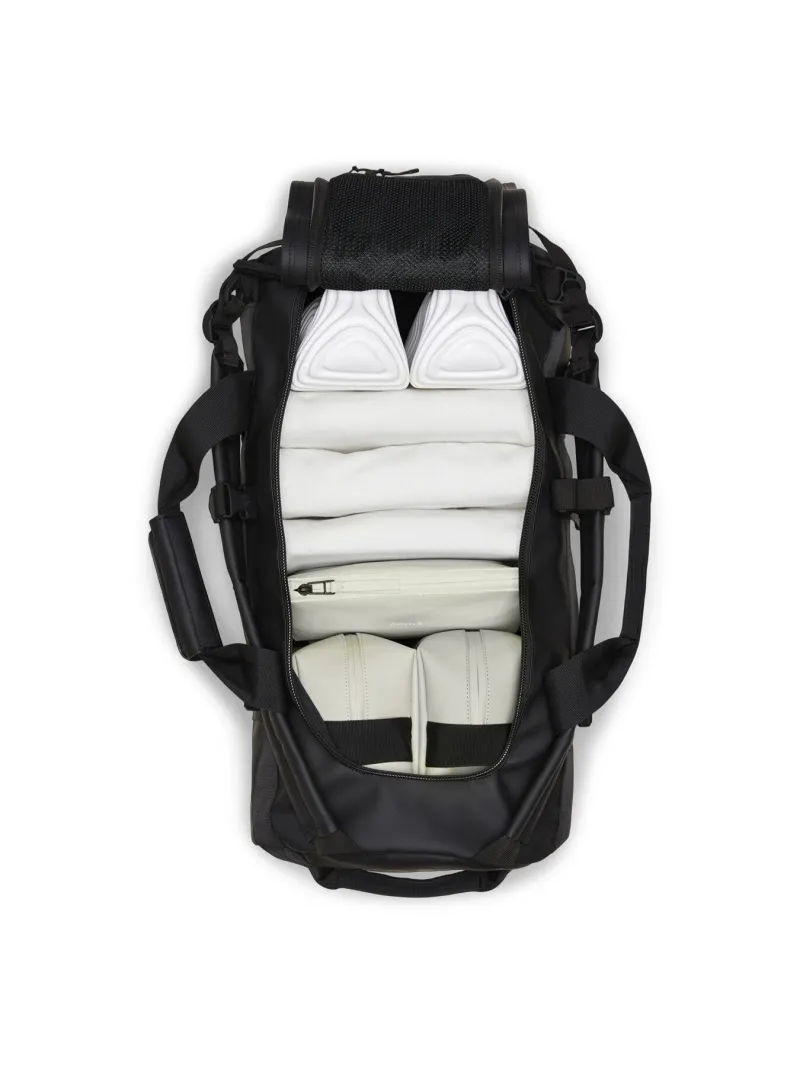 Texel Duffel Bag Small is a high-function silhouette designed for travelling. The bag is characterized by its tubular shape, large opening for easy packing and wrap-around webbing straps. Unzipping the main flap reveals a large main compartment with a side mesh pocket.
