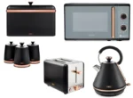 Tower Cavaletto Black Kettle 2 Slice Toaster Microwave Bread Bin & Canisters Set