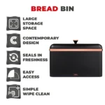 Tower Cavaletto Bread Bin Black & Rose Gold T826130BLK Kitchen Storage Bread Bin