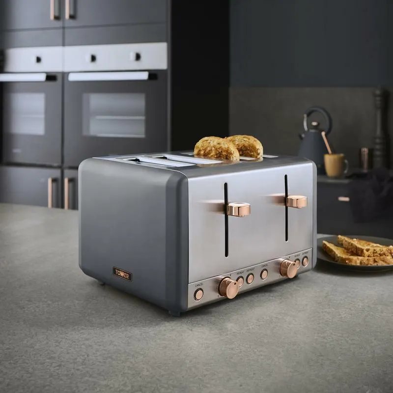 TOWER Cavaletto Kettle Toaster Bread Bin Canisters Mug Tree Towel Pole Grey & Rose Gold