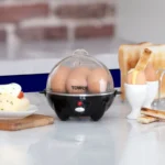 With an intelligent steaming system, this egg cooker provides perfectly cooked results from every use. Featuring interchangeable steaming and poaching attachments, you have the choice between 3 delicious and nutritious egg based meals that are ready to serve in minutes. The boiling tray attachment accommodates up to 7 eggs, while the poaching attachment can create 4 poached eggs during each use. The omelette compartment features dual semi-circular mould shapes to create 2 perfectly cooked omelettes. The auto power off function automatically switches the egg cooker off once the accurate amount of water is used during cooking, with a click sound feature and indicator light to notify you once your eggs are ready to serve. The included water measuring cup features an egg piercer gives accuracy to cooking your eggs, for a hassle-free breakfast.