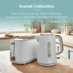 Tower Scandi 3KW 1.7L Kettle & 2 Slice Toaster in Dove Grey with Wooden Accents. Contemporary Matching Kettle & Toaster Set