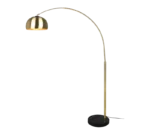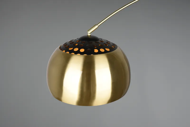 With the help of its timeless design, the elegant arc lamp ARGENTINA can be harmoniously and stylishly integrated into existing home styles. Whether used as a reading lamp next to your armchair or as an alternative light source next to the sofa, the lamp provides a pleasant light and thus creates a cozy ambience. The lamp can be conveniently switched on and off via a foot switch. The frame as well as the shade of the lamp are uniformly held in brass matte and are rounded off by a base in black matte. For energy-saving lighting, it is recommended to use an LED illuminant. These are an optimal alternative to conventional halogen lamps and stand for a high quality of light and energy savings of up to 80%. In addition, LED lamps help you benefit from a long service life, low heat generation and at the same time protect the environment.