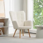 Home Armchairs Tufted Velvet Wingback Accent Chair With Padded Seat For Lounge Or Bedroom Cream White
