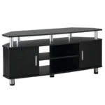 - STYLISH DESIGN: The clean lines of this TV cabinet and the matte black finish with silver metal accents makes this piece stand out in any room