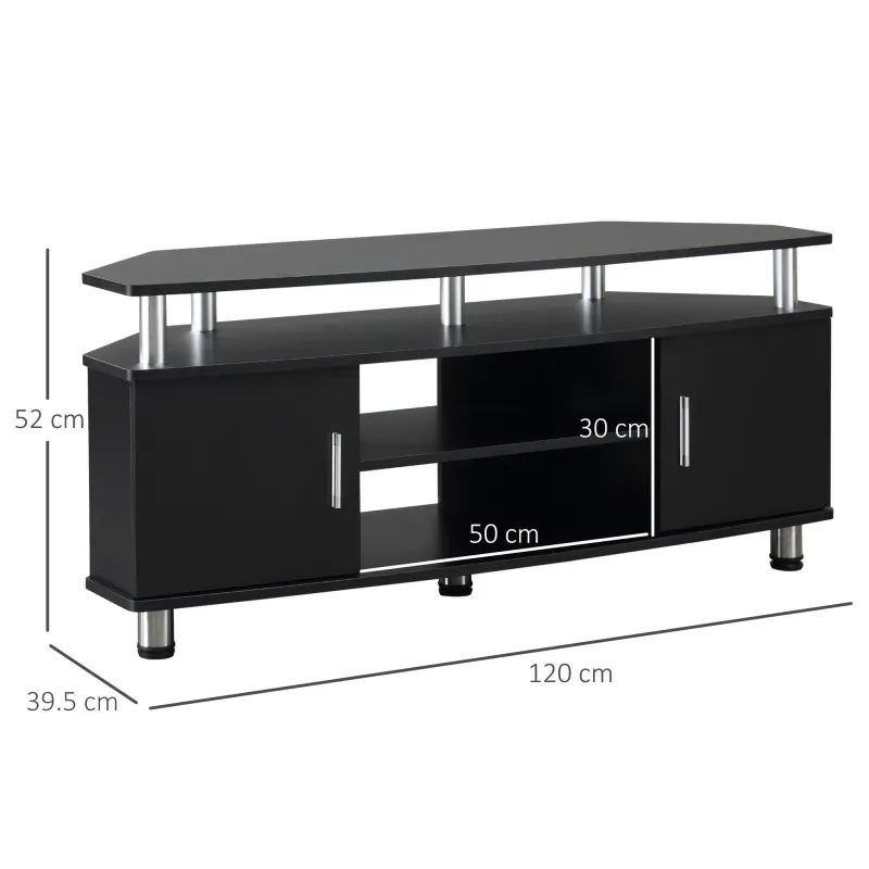 - AMPLE STORAGE SPACE: 120cm top deck for placing your flat screen TV. Features 2 cupboards with door and open storage shelves, perfect for storing remotes, game controllers, media cases and more