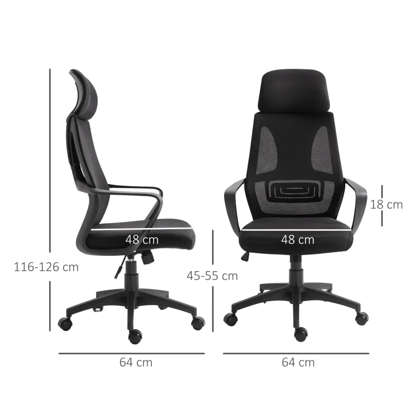 Vinsetto Ergonomic Office Chair, High Back Computer Chair, Mesh Desk Chair with Lumbar Support, Headrest, Wheel, Adjustable Height, Black