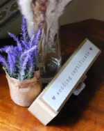 Printed ‘Wedding Certificate,’ on an embellished 3D piece for a timeless design.