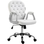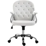 - This stylish office chair features a diamante buttoned backrest and white faux-leather upholstery