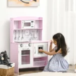Kids love being imaginative and playful – with this HOMCOM wooden kitchen, they’ll have a safe space for endless fun. It includes pots, pans and utensils, whilst the kitchen lights up and makes realistic cooking noises, so kids can enjoy roleplaying games, as they pretend to cook. With plenty of storage space, they’ll pack everything away when finished, keeping their room tidy. Made from MDF, it has no sharp edges for extra safety when playing. A great way to keep kids entertained.