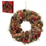 This wreath from Festive is an expertly crafted product at a terrific price and great for families that love spending christmas together. Adorn your front door with this beautiful Christmas wreath, spreading festive cheer to all who walk past. Hang this decoration up around the home to spread Christmas cheer. Constructed from strong metal and durable plastic materials, it comes in a gorgeous red and gold colour scheme.