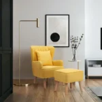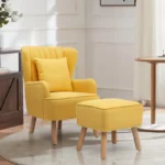 Yellow/Grey Contemporary Upholstered Wingback Chair and Footstool Set