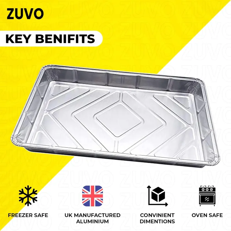 Zuvo Aluminum Foil Baking Tray, 10-Pack, 32x20x3.3cm, Pans for Cooking, Freezing, Serving, Storing